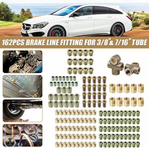 Specification: Product Name: Brake Hose Connectors Condition: New Material: Iron Type: Brake Hose Fittings Quantity : 162pcs Manufacturer Part Number: VW65ASSIMP162 Features: 1.The perfect kit for classic car repair and restoration or modern.? 2.3 / 8 '' unions are typically used on pre-1980 classic British cars such as Ford Land Rover Austin Triumph MG etc.? 3.7 / 16 & quot; unions have been created.?used on fuel lines and 1/4 '' master cylinders?classic car.? 4.For use with 3/16 '' pipe, ideal for extending original piping or repairing damaged lines, the 7/16 '' are for 1 pipe. / 4 & quot;?or 6 mm.? 5.A complete 162-piece kit containing the most popular unions. 6.An essential kit for all enthusiasts and serious workshops.? Package includes: 3/8 & quot; UNF & # 65288; 24TPI & # 65289;?& Eacute; male brake nuts x 50pcs 3/8 & quot; UNF & # 65288; 24TPI & # 65289;?& Eacute; female brake nuts x 50pcs 3/8 & quot;?UNF (24TPI)?& Eacute; In-line female brake nuts x 10pcs 3/8 '' UNF 3 way