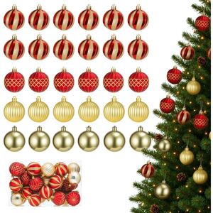 Product Description: 30Pcs 60mm Red & Gold Christmas Ball Ornaments Shatterproof Tree Decorations with Strings Transform your home into a festive wonderland with this set of 30 elegant red and gold Christmas ball ornaments! Designed to elevate your holiday decor, these shatterproof baubles combine style and functionality, making them perfect for families, event planners, and holiday enthusiasts. Features: Premium Quality: Made from durable plastic, these ornaments are built to last. They retain their vibrant color and shape even after years of use, saving you money and reducing waste. Festive Designs: Each ball features a unique pattern, including glitter accents, matte finishes, and classic holiday motifs like snowflakes and stars. The rich red and gold color scheme adds a timeless charm to any setting. Convenient Use: With pre-attached strings, these decorations are ready to hang straight out of the box. Use them on Christmas trees, wreaths, garlands, or as part of a festive
