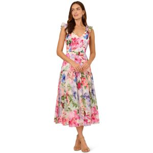 Flowing chiffon in a colourful floral pattern gives this sleeveless midi dress its bright and sunny look. Ruffle straps and a flounce skirt add romance to the soft A-line silhouette. Princess seams and a back zipper ensure a fitted waist. This fluttery V-neck dress is a lovely look for daytime occasions or everyday elegance. Adrianna Papell Women's Sweetheart Midi Dress Size: 18