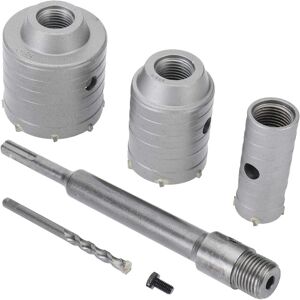 【PACKAGE LIST】: Ø30mm, 40mm, 50mm drill bits, SDS+ shafts, pilot drills and 350mm SDS+ extension rod; This high-quality TCT concrete hole saw set contains everything you need to get started. 【NECESSARY PARTS INCLUDED】: This core drill set comes with 1 locking screw and 1 pilot drill bit, it is quite practical to help stabilize the drilling process, ensure the tip of the drill bit will not move when you are drilling. 【PREMIUM MATERIAL】: This masonry drill bit set is made of high-quality tungsten carbide tipped material, high strength and excellent drilling performance for long-term tough drilling work, also durable enough to last for a long time. 【PRECISE CUTTING】: These are tungsten carbide tipped drill bits that are perfect for cutting clean holes in concrete, brick, and cinder block. 【WIDELY USED】: Suitable for brick walls, red bricks, masonry walls, foam bricks, hollow cores, etc. It can be used to install air conditioners, such as air conditioners, range hoods or washing machines.
