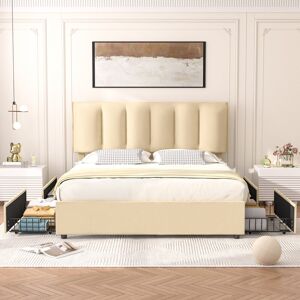 This upholstered bed frame has 4 steel drawers underneath, providing perfect storage space. With a thick and sturdy metal frame, it is made of high-quality metal and wooden slats to extend the life of the bed frame. The headboard can be adjusted between 110cm - 120cm to suit your needs, and you only need to reset the assembly holes in five minutes. The headboard is made of fabric, and the elasticity brought by the foam fits the body, which can effectively reduce the pain caused by daily collisions, making you feel intimate and safe. No spring box is required, just add the mattress after easy assembly. Its simple lines can complement almost all modern bedrooms. Note: Due to the problem of lighting and shooting angle, there may be slight color difference in the actual object. Thank you for your understanding! Brayden Studio Colour: Gray