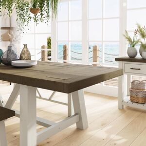 Introducing our Luxury Solid Reclaimed Pine 1.6m Dining Table- a stunning centrepiece for your dining room that combines exquisite craftsmanship with sustainable materials. This dining table is made from reclaimed pine- adding a touch of rustic charm and environmental responsibility to your home. The panelled top of the table showcases the natural beauty of the reclaimed pine- with its unique grain patterns and characterful knots. Each piece is handcrafted with meticulous attention to detail- ensuring a high-quality and luxurious finish. The Luxury Dining Table features a captivating two-tone design- with a driftwood top and a truffle body. Dimensions: Height: 70cm Width: 160cm Depth: 100cm