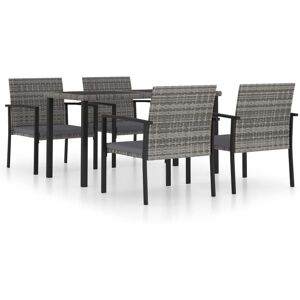 This exquisitely designed garden dining set is meant to be the focal point of your garden or patio! The steel frame makes these tables and chairs sturdy and stable. As the set is also lightweight, all items are easy to move around and suitable for outdoor use. Thanks to the weather-resistant and water-resistant PE rattan, the outdoor furniture set is easy to clean and durable. The thickly padded and removable seat cushions give extra seating comfort. Note: In order to extend the life of your outdoor furniture, we recommend you to protect it with a waterproof cover. Table: Colour: Grey and black Material: Poly rattan, powder-coated steel, glass Table dimensions: 140 x 70 x 73 cm (L x W x H) Chair: Colour: Grey Cushion colour: Grey Material: Poly rattan, powder-coated steel Cushion material: Fabric (100% polyester) Chair dimensions: 58.5 x 53 x 83 cm (W x D x H) Seat size: 47/41 x 45 cm (W x D) Seat height from the ground: 42 cm Armrest height from the ground: 61 cm Seat cushion