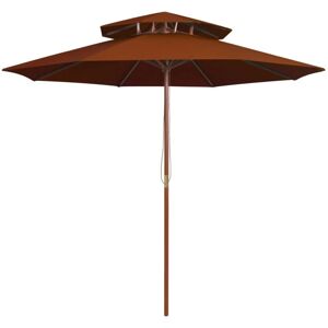 This elegant wooden garden parasol is perfect to create some shade and protect you from the sun's harmful UV rays. Made of UV protective and anti-fade polyester, the parasol cover provides you with optimum protection against the sun and is easy to clean. With the pole diameter of 38 mm, it could be mounted on the existing stand or in the middle of tables with holes. The strong wooden pole, along with the 8 durable ribs, makes the outdoor parasol very stable and durable. The double-decker construction allows air circulation on a hot day. This garden umbrella can be easily opened and closed thanks to the single pulley system. Please note that we recommend treating the umbrella fabric with a waterproofing spray if it is subjected to heavy rainfall. Cover colour: Bordeaux red Frame material: Laminated bamboo, hardwood Cover material: Fabric Overall dimensions: 270 x 256 cm (Diameter x H) Pole diameter: 38 mm With the air vent Including 8 ribs With double-decker canopy Features single