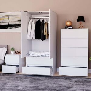 Introducing our sleek and sophisticated Denver Bedroom Furniture Set, designed to transform your bedroom into a modern sanctuary. This set includes a 2-drawer bedside chest, a chest of drawers, and a 2-door 2-drawer wardrobe, offering a complete and cohesive storage solution. Each piece in this set features a minimalist modern design, characterized by clean lines and a handle-free aesthetic that enhances any bedroom decor. The handle-free drawers and doors provide a streamlined, uncluttered look, perfect for contemporary living spaces. The 2-drawer bedside chest provides convenient storage for nighttime essentials, while the chest of drawers offers ample space for clothing and accessories. The 2-door 2-drawer wardrobe includes a hanging clothes rail, providing generous space for both hanging and folded garments, ensuring your wardrobe stays organized and easily accessible. Crafted from high-quality materials, this bedroom furniture set is built to last, promising long-term durability