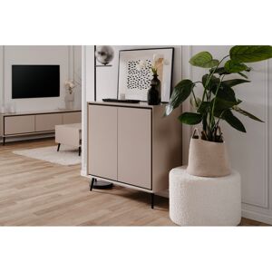 Chest of drawers with 2 doors and 3 drawers Left: 1 door and 1 shelf Middle: 3 drawers (2 with handles) Right: 1 door and 1 shelf Color: Sand / Black Dimensions: Approx. 135cm W x 90cm H x 38cm D. Body thickness approx. 18mm Doors with soft-close function Body frame with bevelled edge Handleless with bevelled edge Black plastic feet (approx. 15cm high) Black handle on the two lower drawers (anodised aluminum) George Oliver