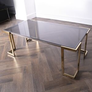 This Domus console table has a smoked grey glass top and a striking leg design that is sure to catch attention, this table is also available in silver. Cleaning advice: As the metal is plated, it's advised that you do not clean with any harsh detergents. It's best to use a metal polish, glass cleaner or water. Before trying a product for the first time, we recommend carrying out a spot test in an area not visible. Fairmont Park