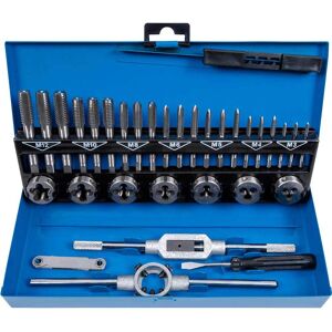BlueSpot Tools Metric Tap and Die Set, manufactured from alloy steel and features a range of taps and dies for cutting and cleaning threads. Supplied in a heavy-duty steel box for easy storage. Contains: 21 x Taps (3 of each size): M3 x 0.5, M4 x 0.7, M5 x 0.8, M6 x 1.0, M8 x 1.25, M10 x 1.5 and M12 x 1.757 x Dies: M3 x 0.5, M4 x 0.7, M5 x 0.8, M6 x 1.0, M8 x 1.25, M10 x 1.5 and M12 x 1.751 x Tap Wrench1 x Die Holder1 x Metric Pitch Gauge1 x ScrewdriverAdditional Information:• Thread Type: Mixed Set