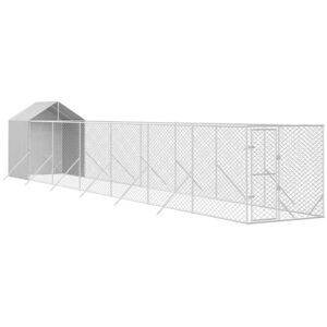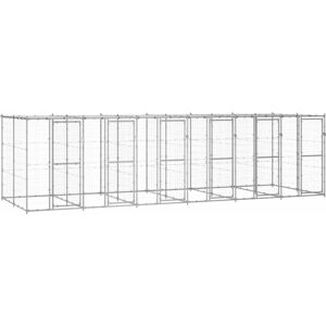 This versatile dog kennel features multiple uses: playing, exercising, training, or simply keeping your dog safe. It will be the perfect play paradise for your furry friends! This dog kennel provides ample exercise space. The mesh all around helps prevent mischief and unexpected accidents while enabling ventilation. Thanks to the sturdy galvanised steel construction, this dog kennel is durable and built to last. Made of PE, the included top canopy is water-resistant and UV-resistant, providing protection from sun, rain, snow, as well as other weather conditions. The hinged door with a lockable latch system ensures extra security and safety for your dogs. Colour: Silver Material: Galvanised steel, PE Overall dimensions: 770 x 220 x 180 cm (L x W x H) Door size: 55.5 x 160 cm (W x H) With a roof and doors Lockable latch system Mesh sidewalls Assembly required: Yes SKU: 3082276 EU responsible party Haba Trading B.V. Mary Kingsleystraat 1 5928SK Venlo The Netherlands
