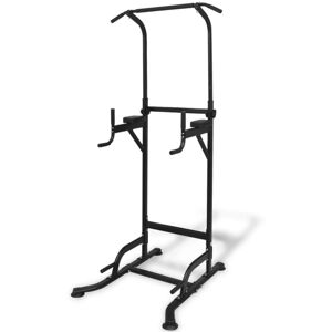 This multi-functional power tower is designed for a wide range of exercises, sit-ups, chin-ups, dips, pull-ups, leg raises and more. Capable of accommodating users weighing up to 160 kg, this multifunctional power tower is height adjustable from 182 cm to 235 cm and leg raise/dip supports are thickly padded for a more comfortable and easier workout experience. The multifunctional power tower's sturdy frame is finished with a black powder coating and the cushions on the leg raise/dip supports have a PU cover. Colour: Black Material: Power-coated steel + artificial leather cushion Dimensions: 124 x 94 x 182-235 cm (L x W x H) Maximum load capacity:160 kg Features: 1 x Chin-up bar Leg raise/dip supports Sturdy base