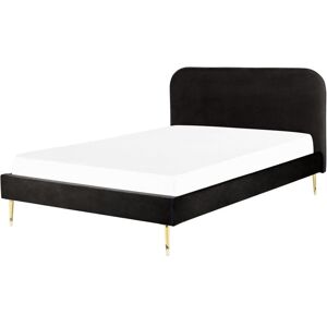 Minimalist Bed with Velvet Upholstery. Elevate the look of your bedroom with this stylish, minimalist bed. Its velvet upholstery, in black colour, is pleasant to touch, while also being durable and long-lasting, making it a perfect addition to any interior that will surely draw attention. The slatted frame, crafted out of solid wood, ensures good, relaxing sleep and proper body weight distribution. The whole construction is complemented by golden legs, which add a glamorous vibe to the bed as well as guaranteeing stability of the furniture. Details: Product Type: Double Bed Style: Glam General Color: Black, Gold Material Type: Fabric Main Material: Velvet Additional Material: Iron Material Composition: 100% Polyester Fabric Upholstered Back: No Dimensions: Headrest Dimensions: 193x89 Width: 193 cm Length: 215 cm Height: 109 cm Sleeping Surface: 180x200 cm Weight: 36 kg Weight Capacity: 300 kg Offer Includes: 1 x Bed Frame, 1 x Slatted Frame (39 Sprung Slats), Not Included: Mattress,