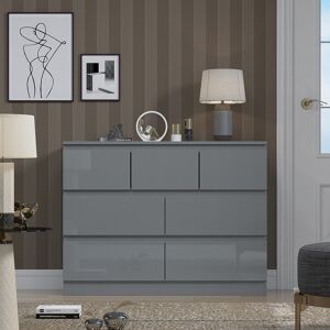 The Warren 7 Drawer Merhcant Chest Of Drawers in offers a tailored storage solution for modern bedrooms. This chest features four large drawers below three top drawers, each designed to facilitate easy organization of both large and small items. The body of the chest has a crisp matt finish with the drawers available with a choice of matt or contrasting gloss fronts. The drawers are 14 cm deep, providing substantial space for a variety of items. This piece is not only visually appealing but also durable, thanks to its scratch-resistant surface. The Warren Collection is designed to keep your bedroom organized and clutter-free while adding a contemporary touch to your space. Its sleek handleless design brings a minimalist and modern aesthetic, suitable for a wide range of interior styles. The Warren Collection offers a variety of finishes, including Black Gloss, Dark Grey Gloss, White Gloss, Matt Black, Matt Dark Grey, and Matt White, ensuring you can find the perfect match for your bedroom decor. Hashtag Home Colour: White Gloss