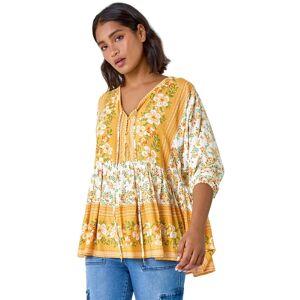 Floral Border Print Midi Dress from Roman. A new summer favourite in this floral simple but elegant dress. This number offers a round neckline with short angel sleeves with a contrast border hem. Simply add sandals and a denim jacket for a stroll in the park or a cropped jacket for a garden party. Roman Women's Floral Border Print Midi Dress in Light Blue Size: 14