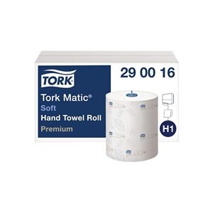 2-ply, soft, tear resistant paper towel roll. For use with Tork H1 dispensing systems. Ideal for washrooms with frequent use. From a traceable source of origin. Roll length: 150m. The Food Safety Label guarantees safe, short-term contact with food.