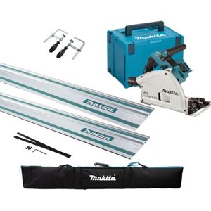 The Makita LXT Brushless Plunge Saw is powered by two 18 volt Li-ion batteries which transfer energy to the powerful 36 volt DC motor drive system. Using Automatic Torque Drive Technology, this saw can automatically change cutting speeds according to working conditions for prime excision. Completely cord free and using the latest soft start technology, this Makita Plunge Saw is easy to use with minimal start-up shock and smooth splinter free cutting. Features of the DSP600ZJ Plunge Saw: Electric brake Variable speed control by dial Soft start Automatic Torque Drive Technology (ADT): automatically changes the cutting speed according to load conditions for optimum operation Brushless motor Depth stopper for splinter free cutting Bevels -1 to 48 degrees Positive stop for bevel adjustment Powered by two 18V Li-ion batteries in series to supply energy to the powerful 36V DC motor drive system. Compatible with Guide rail Features of the BAP 1.5M Aluminium Guide Rail: 1500mm (55"") Long.