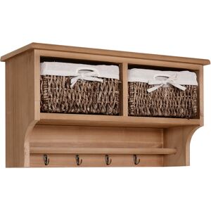 This HOMCOM wall mounted storage shelf is a great item to have in your entry or hallway for your home or office. It comes in a modern design with four metal hooks to hang your coats and two cube shelves with two pullout wicker baskets. These will be a great place to store your gloves, scarves bags and more. The unit gives you ample storage and will be an ideal solution to match your home or office décor.