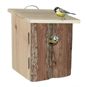 With the help of the nesting box, you can watch smaller wild birds hatching together with your family. The entrance hole has enough distance from the bottom of the bird box so that the young birds are well protected from predators. In addition, the bird house has a hinged side wall, which makes it easy to clean the nesting box after the nesting season. The nesting box is made of untreated wood and can be painted. Nesting Box in Detail - Overall dimensions H x W x D: approx. 20 x 16.5 x 16.5 cm - Interior dimensions W x D: approx. 12 x 12 cm - Entrance hole D: approx. 28 mm - Weight: approx. 0.6 kg - Material: wood - Colour: natural Nesting Box for Small Birds - Designed for smaller bird species - Bird house can be mounted on a tree or a wall - Features real tree bark - Ideal for the birds' claws - Made of untreated, weatherproof fir wood - With hinged side wall for easy cleaning Instructions for Installation - Install the bird nest box at least 2 to 3 m above the ground - The entrance