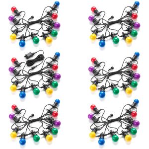 Fancy creating a fun, colourful, carnival atmosphere in your garden or home? Our multi-colour LED festoon string lights from Dakota Fields come in 5-metre sections of 10 bulbs that you can connect together to create a string up to 30m long! Choose from: 5m (10 bulbs) 10m (20 bulbs) 15m (30 bulbs) 20m (40 bulbs) 25m (50 bulbs) 30m (60 bulbs) With 5m (16.4ft) of unlit power cable attached to a plug-in transformer to reach nearby sockets with ease. 5 colours on display Each lamp contains a 55-lumen LED in a coloured bulb to give you a repeated pattern of yellow, green, red, blue and purple. A perfect colour combination to create an instant party or funfair feel. And with each bulb being spaced only 50cm apart, it gives you high-density lighting to help saturate your area with a rich display of colours that really pop in the evening. Use indoors or out The lights are IP44 weatherproof rated, making them ideal for hanging outdoors. They’ll work just as well indoors too. Chain them across a fence, post, gazebo or wall. You can use the cable itself to support the lights, or use the optional hooks to hang the bulbs exactly how you want them. Connect strings together to increase or decrease the light chain No matter which option you buy, you’ll always receive these festoon LED lights in lengths of 10 bulbs spanning 5 metres of cable. You can just use one or connect up to 4 strings together for a 30m length of 60 multi-colour bulbs. Don’t be stuck with one size. Make your colour festoon lights as long or short as you need them for parties, BBQs and events - or even as a permanent display. Multi-colour LED festoon chain lights by Dakota Fields Enjoy your LED festoon lights with Dakota Fields quality backed by a 2-year warranty. Specifications: Each string is 5m of 10 lights Order packs of 1-6 (5m of 10 lights, up to 30m of 60 lights) High-density: 1 lamp per 50cm IP44 weatherproof for outdoor use Plug-in transformer must be used indoors or in suitable weatherproof socket Additional 5 metres of non-lit power cable 5 repeating festoon colours - yellow, green, red, blue and purple 55 lumens per bulb hanging clips included. Dakota Fields Size: 25m LED
