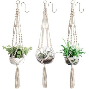 Stainless Steel Key Holder: There is a key ring at the top of the string for hanging on the hook (not included) on the ceiling, balcony, window, iron shelf, etc. Hand-knotted: Made of natural jute, it is well-made and sturdy, with a simple and natural appearance that fits perfectly into any decor; Austere Style Hanger: The macrame jute plant hangers are suitable for different colors and patterns of flower pots, it will not stand out with this color Very Easy to Handle and Hang: The plant hangers are suitable for indoor and outdoor use; just extend the 4 leg strings, place the flower pot in the middle of the conjunction The classic retro stand can fit any modern or conventional style; You can hang it outside for several days to let the jute smell out.
