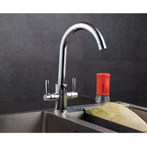 ?Specification: Tap Type: Kitchen tap Main body material: Brass Finish: Chrome Valve: Ceramic valve Control Type: Double Lever Water Feature: Hot and Cold Spout Swivel: 360 degree Design Type: Traditional/Modern Hoses: 2 x flexible hoses Mounting Type: Deck mounted Minimum pressure: 0.5bar Recommended pressure: 1bar ?Features: Dual control lever mono-bloc kitchen mixer tap 360 degrees Swivel spout makes it perfect for big twin double bowl sinks Solid brass construction, making them durable and long lasting Ceramic cartridge assures a lifetime drip free performance and allows exact control of water flow and temperature Twin Ceramic Handle: easy control of hot and cold water Hot & cold mixer mono tap ?Contents: 1 x Kitchen Mixer Tap 2 x connection hoses All fitting hardware