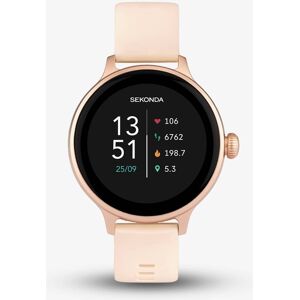 The Sekonda Connect Smart Watch features an ion-plated rose gold case with a 1.1-inch AMOLED touchscreen. It tracks steps, sleep, blood oxygen, and heart rate, and offers 14 sports modes. You can manage calls, set contacts, and receive notifications via Bluetooth. The watch has a 16mm pink silicone strap and is splashproof (IP67 rated). • Presented on a pink rubber strap with traditional buckle. • 28mm case width. • Splash Water Resistant • CPU Movement