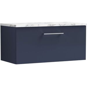 Arno Wall Hung 1-Drawer Vanity Unit with Carrera Marble Worktop 800mm Wide - Charcoal Black Woodgrain - Nuie