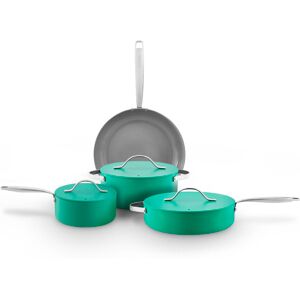 Channel your inner chef with this cookware set from the Colour Me Happy range from Sur La Table. It has everything you need to tackle everyday cooking tasks ranging from creating a classic beef bourguignon and fluffy poached eggs to creamy sauces and flavoursome soups. Crafted from 3mm forged aluminium, each piece in this cookware set is designed to make cooking simple, ensuring even heat distribution for thorough cooking, whilst aluminium lids with steam release vents will lock in flavour and allow you to regulate the temperature to ensure food is cooked to perfection. The bonded steel base allows for rapid heat up so you can get started sooner and will let you use each pan on any hob type, including induction for versatility, whilst they are also oven safe up to 280°C so you can add the finishing touches to all of your culinary creations. The superior ceramic coating is 10x stronger than standard non-stick coatings and is free from PTFE, PFAS, PFOA, Lead and Cadmium for healthier, toxin free cooking, whilst you can safely use wooden and nylon utensils without damaging the pan. Each piece in this cookware set is dishwasher safe for an easier clean, though handwash is recommended to keep the ceramic coating working its best. Ebern Designs Colour: Orange
