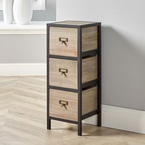 The Modern Mundesley Geometric 3-Drawer Wooden Storage Cabinet with Metal Legs. Crafted from MDF with a paulownia veneer in a light brown finish. It's perfect for adding ample storage space to any room. With durable metal legs and flat-packed, Available in either 3 or 4 drawers. 3 Drawer Size = (W) 35cm (D) 29cm (H) 53cm
