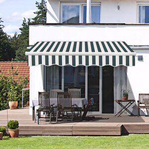 Features -This listing is for the awning replacement fabric (top cover+frill) only. -300g/m2 PU coated PE fabric, water-resistant.(Water resistance rating: 17L/m2xh ) -Colour: Green-White -Provided by the awning manufacturer, perfectly fit our awnings and others' of the same size. -Awning size is measured from side cover to side cover. Width of fabric is less than awning. -3.38x2.5m for 3.5x2.5m awning