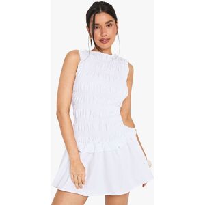 Boohoo Womens Shirred Waist Skater Dress - Light Pink Cotton - Size 12 Uk