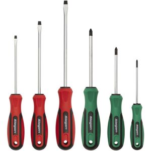 Siegen: Soft Gip Scewdive Set 6 Piece Selection of popular sized screwdrivers. Chrome Vanadium shafts with satin finish. Screwdrivers are shot blasted and have magnetized tips. Contoured handles with rubber grip for added control. MPN: S0615 EAN: 5024209815703 Soft Gip Scewdive Set 6 Piece Attributes: MFR Part No.: S0615