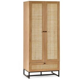 Fusing modern construction with retro design elements, the wardrobe will exquisitely complement any styled home. The natural rattan fronts and industrial-style base collaborate perfectly to leave a warm yet chic aesthetic in your home. Also available in a black finish.