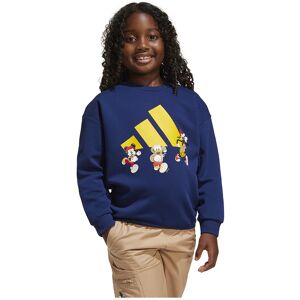 Disney´s beloved Mickey and his iconic friends get sporty in this fun sweatshirt by adidas.Mickey and the gang bring their playful style to everyday wear, decorating this top with allover graphics.Great for lounging at home or wearing to school, versatile French terry fabric and ribbed cuffs keep it feeling soft and comfortable all day long.The cotton in this product has been sourced through Better Cotton.Better Cotton is sourced via a chain of custody model called mass balance.This means that Better Cotton is not physically traceable to end products.FEATURES:-Loose fit.Ribbed crewneck.-77% cotton, 23% recycled polyester French terry.-Ribbed cuffs and hem.-Mickey and Friends graphics.-Wash & Care:-Do not bleach.-Use mild detergent only.© Disney.Wash with like colors.-Touch up with cool iron.-Do not dry clean.-Machine wash cold.
