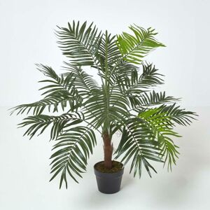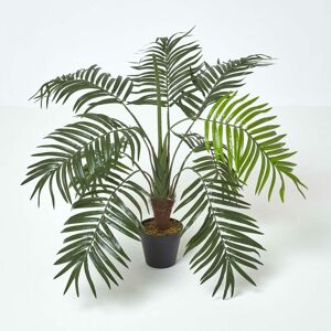 Just the thing to counter drizzly British weather, this Green 3 ft Mini Palm Tree Artificial Plant will give your home a tropical taste. Perfect for those who love the look of lush greenery but dont have the time, space or gardening know-how to care for living houseplants, this replica palm provides a low-maintenance way to introduce natural colour into your home. With two husk-covered trunks, this fern-like plant showcases large, leafy fronds in varying green shades, all made from realistic-looking, durable synthetic materials, so you dont have to worry about wilting or discolouring in even cold offices or warm conservatories. It comes supplied in an imitation moss-covered plant pot, which can be placed into a decorative container to suit your dcor. Thanks to a UV resistant coating, this plant can be used anywhere in your home without fear of sun-bleaching but we recommend that it is not placed outdoors. To keep your plant looking its best, wipe with a damp cloth. Measures approximately 100 cm (39) tall. Homescapes Green Mini Palm Tree Artificial Plant with Pot, 100 cm