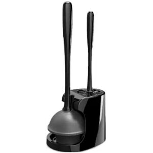 2 in 1 : The product contains a high efficient toilet brush, a powerful toilet plunger and a two-compartment steady holder. Space saving stylish design and convenient storage, keep your bathroom neat, clean and well organized, it's a must-have accessory for your bathroom cleaning. HEAVY DUTY TOILET PLUNGER: Built with commercial grade rubber suction cup which provides maximum plunging power for clearing tough clogs of toilet bowl, shower drains and sinks. Ergonomic handle features a secure and comfortable grip, makes your plunging more effectively, it's great for commercial and residential use. HIGH EFFICIENT TOILET BOWL BRUSH: Strong bristles are not easy to get deformed, they are economical and practical, the dense nylon bristles offers thorough and deep cleaning of under-rim area and those hard-to-reach corners. Water easily drips off bristles into steady holder, brings you a refreshing cleaning experience. CONVENIENT STORAGE - Compact space saving design keeps your toilet brush