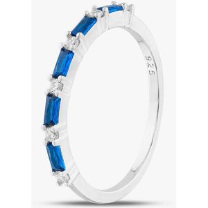 A captivating sterling silver half eternity ring showcasing baguette-cut blue cubic zirconia stones, beautifully complemented by brilliant-cut white cubic zirconia stones. This elegant design blends rich colour with classic sparkle for a refined and timeless look. Item Code: S2210