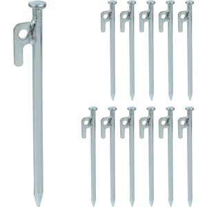 If you are looking for a reliable way to secure your tent when camping on soft or hard ground, you should reach for these XL tent pegs in a set of 40. The ground anchors made of galvanised steel do their job uncompromisingly and cannot be bent. Thanks to their pointed tips, you can hammer the ground stakes into the earth without much effort. The tent pegs are very long at around 45 cm and are therefore ideal for fastening particularly large tents, tarpaulins or gazebos. Set of 40 Ground Stakes in Detail - Total size H x W x D: approx. 45 x 6.5 x 1 cm - Inner size of arch: approx. 4.5 x 4 cm - Weight of each peg: approx. 430 g - Material: Galvanised steel - Colour: Silver Ground Pegs Made of Galvanised Steel - For securing tents, awnings and pavilions - Protect against strong winds and storms - Also suitable for hard and stony ground - Point makes it easy to hammer the pegs into the ground - Extremely stable steel - Won't bend - Can also be used for securing trampolines Included in