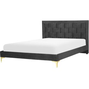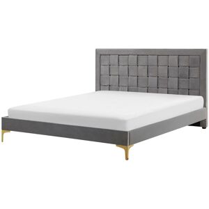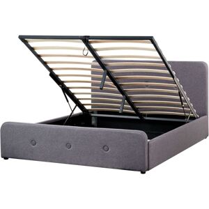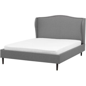 Comfortable Bed with Chic Headboard in Grey. An elegant frame and beautifully crafted headboard combined with the highest comfort standards, this bed has it all. Covered in high-quality wear-resistant linen, the piece boasts an upholstered headboard with a slightly curved shape that brings to mind the most comfortable armchair. Featuring decorative metal studs, this bed is the epitome of classic design. Details: Product Type: Double Bed Style: Retro General Color: Grey, Brown Material Type: Fabric Main Material: Fabric Additional Material: Plywood Material Composition: 100% Polyester Fabric Upholstered Back: Yes Dimensions: Headrest Dimensions: 170x92 Width: 170 cm Length: 215 cm Height: 107 cm Sleeping Surface: 160x200 cm Weight: 42 kg Weight Capacity: 200 kg Offer Includes: 1 x Bed Frame, 1 x Slatted Frame (26 Sprung Slats), Not Included: Mattress, Bedding and Cushions Key Features: Comfortable and Wide Sleeping Surface, Traditional Design with a Modern Touch, High-Quality