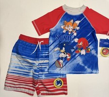 Sonic the Hedgehog Rash Guard Swim Set Blue 11-12 Years