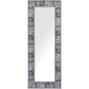Rustic Wall-Mounted Mirror. Upgrade the look of your surroundings with this rustic-inspired wall mirror. Crafted from wood-effect eco-friendly synthetic material and finished in grey and white, the piece features a thick frame that makes it a chic statement to any room. Hang it in a living room, in a bedroom or in a hallway and enjoy the Bohemian vibe. Details: Product Type: Wall Mirror Style: Scandinavian General Color: Grey, White Material Type: Synthetic Material Main Material: Synthetic Material Additional Material: Glass Shape: Rectangular Finish: Matt Orientation: Horizontal Dimensions: Depth: 3 cm Width: 50 cm Height: 130 cm Weight: 8 kg Offer Includes: 1 x Mirror Key Features: With Hooks on the Back for Hanging on the Wall, Perfect for Both a Bedroom and a Living Room, Enlarges Interior Visually, Eye-Catching Accent Piece, Perfectly Complements Home in Any Decor Assembly Information: Does Not Require Assembly Maintenance tips: Synthetic Material: 1.Clean with a mild cleaner