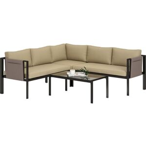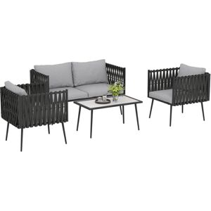 Gather round and relax in simplicity with this Outsunny set. Comes with four pieces two loveseats, one corner seat and a dining table. Steel frames mean a strong, supportive structure. Thick padded seat and back cushions for comfort. Tempered glass table top for a beautiful finish. OUTSUNNY 4 Piece Garden Furniture Set w/ Breathable Mesh Pocket in Light Grey