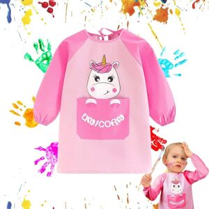 Unicorn painting apron for 3-8 years old kids painting art school. . Made of smooth and waterproof polyester material, easy to clean, quick drying and reusable.< br/> The length of the children's art apron is 55cm, one size fits 3-8 years old girls and boys. Beautiful lively unicorn pattern and pink background, 2 long sleeves to protect from heat. paint and dirt, a large front pocket to accommodate painting tools or other items. Perfect for painting, drawing, writing, arts and crafts, clay, water play , cooking, games, baking at home or at school. Specifications: Material: Polyester Color: Pink Size: 55cm. Package includes: 1 x Children's Painting Apron. Notes: There may be some errors in size due to manual measurement. Color may have difference due to different monitor. Please confirm the size before to order, please.