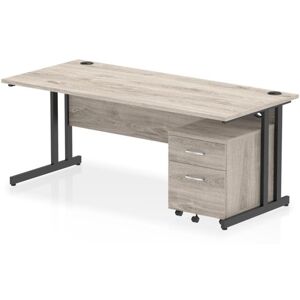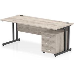 Impulse 1800 x 800mm Straight Office Desk Black Top White Cantilever Leg Workstation 2 x 2 Drawer Fixed Pedestal