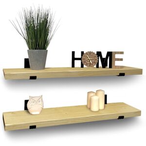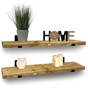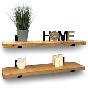Eco-Friendly Material - Each piece of our floating shelves is made from reclaimed timber, carefully handpicked for its unique traits. Though each wood piece is unique, we believe it only adds an extra touch of charm to your furniture.Robust & Reliable - Our custom-made rustic wooden shelves are designed to bear weight once installed properly. You can choose from seated or flat-lipped black L-brackets. We provide black powder-coated brackets as standard, with screws and brackets included.Hand Crafted Shelves - The shelves are treated with Briwax wax as standard, resulting in a natural rustic finish. Each wall-mounted wooden shelf is meticulously handcrafted, embodying more than just furniture – they are art pieces.Superior Rustic Shelves - These versatile floating shelves have ample space for books, accessories, seasoning bottles, trinkets, and more. The rustic wooden shelves, complemented by the sleek, robust black steel frames, make for an excellent addition to any room.Ideal Gift Option - These sturdy, easy-to-install, and elegantly designed shelves are a splendid addition to any home. With their capability to beautifully display collectibles, our wooden shelf boards make a perfect gift for your loved ones. Complete Kit - Includes 2 wall shelves, 4 metal brackets complete with screws, and assembly instructions. Brambly Cottage Finish: Rustic Pine, Size: 4.5cm H x 90cm W x 22cm D