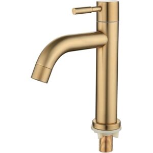 Made of 304 stainless steel material, and smooth. Brushed , clear texture, soft feeling. Fixed base with stretching wire, firmly installed, can be installed without tools. suitable for kitchen, bathroom, home, hotel and so on. Feature: Single Hole Output Type: Single cold Colour:gold Material:304 stainless steel Size:Height: 185mm Package Contents: 1 * faucet Only the above package content, other products are not included. Note: Light reflection and different displays may cause the color of the item in the picture a little different from the real thing. The measurement allowed error is +/- 1-3cm.