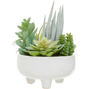 This southwestern inspired faux Fiori is ideal for farmhouse decor. The mixed succulents are arranged neatly in a large white ceramic pot reflecting the aesthetics of rural architecture. These succulents are well-suited for windowsill culture. The Seasonal Aisle