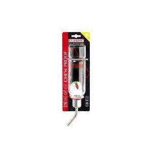 Classic Pet Products is delighted to introduce three sizes of glass drinking bottles in capacities of 175 ml 350 ml and 750 ml These new bottles are manufactured from eco-friendly recyclable glass which is hygienic and dishwasher safe The high quality metal drinking spout and cap unit ensures the bottles are chew proof and the industry famous original Classic design double ball bearing method of water retention / release guarantees a leak free bottle A fun looking (Carrot shaped) water level indicator allows you to see at a glance whether the bottle needs refilling and a capacity graduation on the bottle back is useful for specific filling level requirements The bottle attaches to a cage at two separate points through a sturdy spring clip and hook bracket Each bottle is displayed on a quality retail friendly backing card with euro slot The 350 ml bottle is a suitable size for small furry pets such as rabbits and guinea pigs as well as birds such as pigeons and parrots