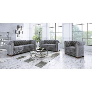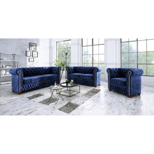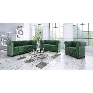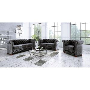 The Chesterfield sofa set consisting of a 3-seater, a 2-seater, and a chair with golden metal leegs is the perfect choice for an elegant living room. Crafted from high-quality velvet fabric, these pieces of furniture offer not only a touch of luxury but also high comfort. The seat cushions are filled with premium foam padding and springs, providing a plush and supportive sitting experience. The classic Chesterfield design with button detailing on the front and back gives these pieces a timeless elegance. The golden metal leegs in a shiny gold finish not only provide stability but also add a touch of glamour to the set. This Chesterfield sofa set accommodates up to six people and is ideal for families or entertaining in larger gatherings. An ensemble that combines comfort and style. Etta Avenue Upholstery Colour: Black