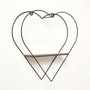 Brand: Homescapes Colour: Black Material: Metal & Wood Pack Size: 1 Shelf Heart shaped black metal and wood floating shelf, easy to hang, shabby chic style framed shelf crafted from solid wood, available in 2 sizes. Wire Floating Shelf Rustic style wall mounted shelf, crafted from strong black metal and wood. This sturdy shelf is surrounded by a simple heart shaped black metal frame and is ideal for styling in living spaces and bedrooms. Perfect for housing ornaments, picture frames, candles and small plants why not mix and match sizes to complete the look? Wall Mounted Shelf Part of Homescapes' collection of floating wall shelves, this heart shaped shelf is available in 2 sizes, small shelf measures 20.5 cm wide and larger shelf measures 41 cm wide. Fixtures and fittings not included, always ensure shelves are securely hung before use.
