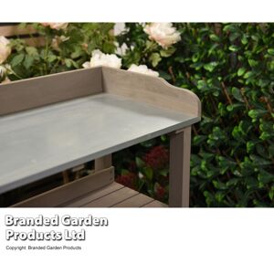 This 3-Tier Wooden Potting Table is the ultimate solution for gardening enthusiasts seeking both functionality and style in their outdoor space. Crafted with precision and care, the potting table boasts an elegant but robust design featuring two reinforced wooden shelves and a galvanized steel worktop. Protective galvanised foot pads fitted on all four legs prevent direct contact with damp ground, ensuring the longevity of the high quality, solid Canadian hemlock wood construction. The smooth surface of the waterproof worktop ensures easy cleaning while offering unparalleled durability and resistance to rust, making it perfect for handling all your gardening tasks with ease. Equipped with six galvanized metal hooks, this table provides convenient storage for small garden tools, keeping them within arm's reach whenever you need them. With large open-space shelves and a total weight capacity of 90 kg (30 kg per shelf), this potting table offers ample storage for all your gardening essentials, even heavy bags of compost. Whether you're potting plants, organising supplies, or simply enjoying some outdoor greenery, our sturdy and durable design provides the perfect workstation all your gardening endeavours. Features: 2 reinforced wooden shelves 1 galvanised steel worktop 6 galvanised metal hooks Protective galvanised metal foot pads Specification Dimensions: 77 (L) x 37 (W) x 92 (H) cm Worktop dimensions: 74 (L) x 35.5 (W) cm Weight: 11kg Total weight capacity: 90 kg – 30 kg per shelf Colour: Grey Material: 100% Canadian hemlock wood and galvanised steel worktop Dakota Fields